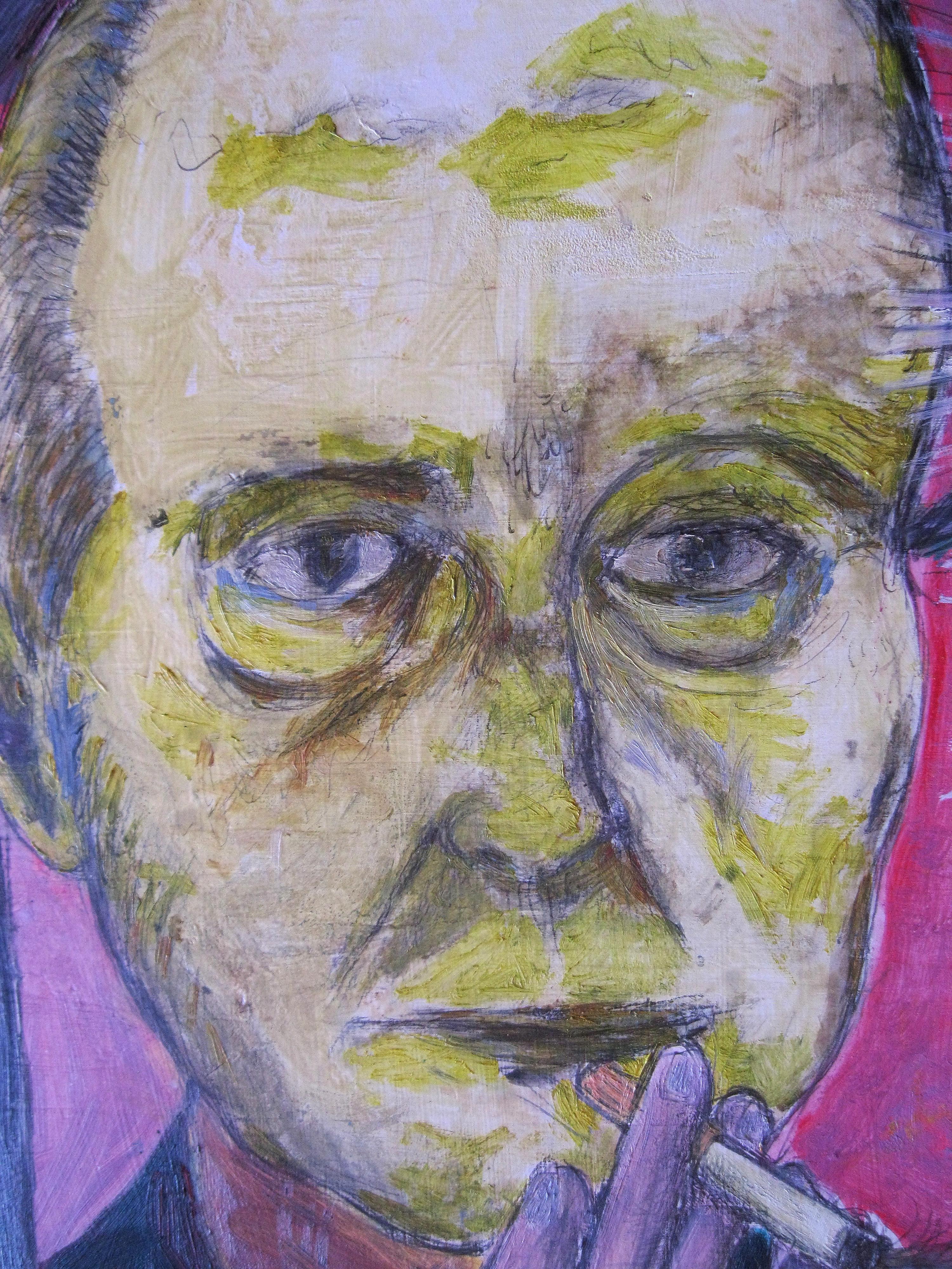 “…è una legge che si è trovato, e si lascia!”, una frase che ripeteva spesso, negli ultimi anni, mio nonno, qui raffigurato da me dopo la sua scomparsa. Un omaggio ad un mondo contadino e popolare che fa parte della mia storia, che richiama vagamente quella di un ex-voto. Ed è, questo quadro, un mio personalissimo dono, perchè è stato dipinto come un ex voto, nella scelta del formato, nella resa dei particolari, nella pittura così semplice ma d’effetto, come nella tradizione di certe opere sacre, che un tempo adornavano le pareti di chiese e conventi. Ma l’ex voto emerge sopratutto nel “messaggio”, in questo titolo così esplicito quanto ermetico, come certi detti della cultura contadina, se vogliamo, che sembrano facili ma, nello stesso tempo, sono delle complesse metafore. Perchè la vita è questa, una legge che abbiamo trovato, e che ci tocca lasciarla tra i vivi…