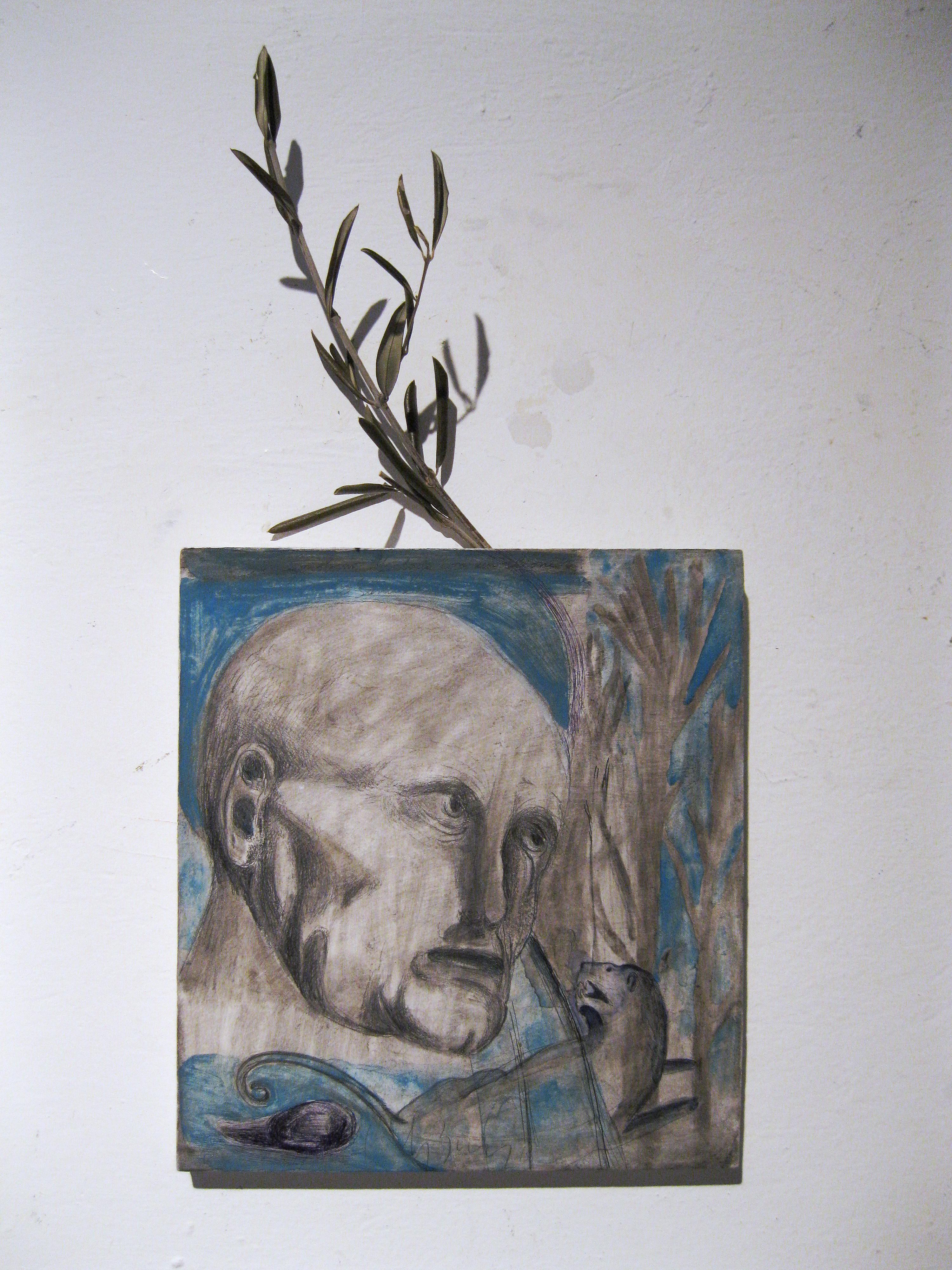 Un piccolo quadro votivo, partendo dall’effige del Santo dipinto da Leonardo, così completa e totale, negli occhi carichi di dolore e pathos, quasi persi in una sorta di estasi, un omaggio a quella pittura sacra, ma non sacrale, di cui oggi sembrano molti scordarsi, e del dialogo tra artista e religioso, forse cercando una mistica prova di coraggio, oppure di lasciami, di abbandonarmi al richiamo della storia dell’arte, che fino all’ottocento era incentrata, per via di committenze, sulle tematiche Cristiane.